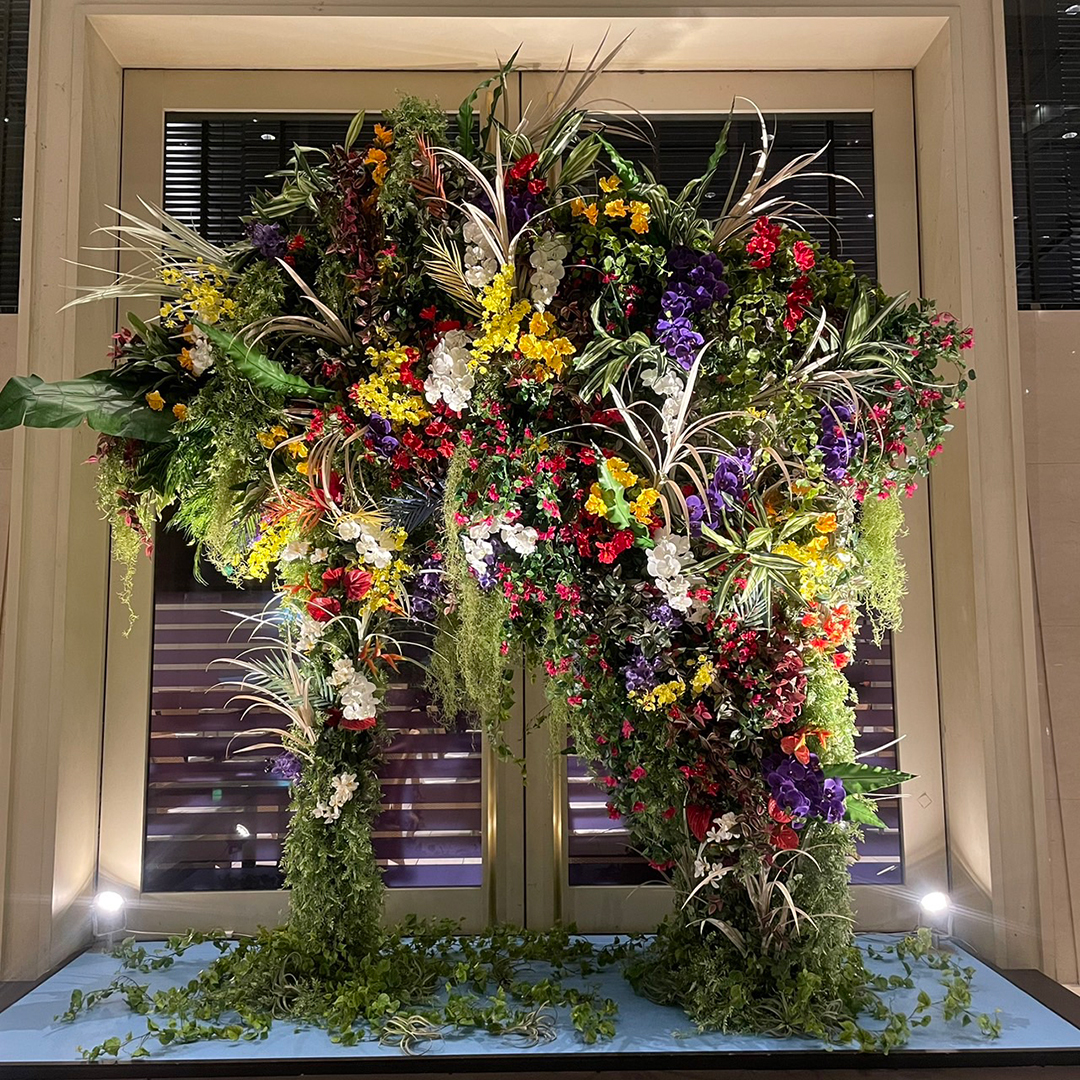 品川プリンスホテル メインタワー1階 「南国の植物に囲まれて」 ジャングルのような緑にカラフルなトロピカルフラワー その向こうに何が待っているかな flower Design 松井達彦